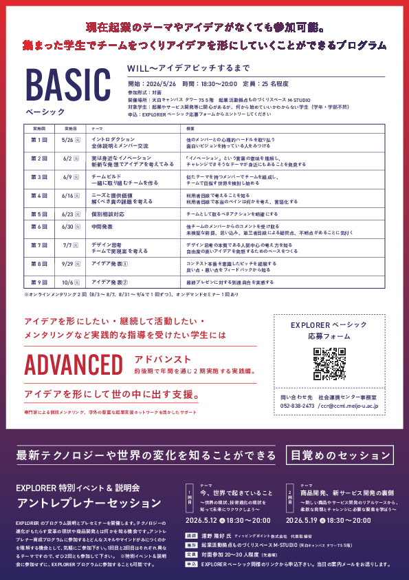 アントレプレナー(起業家)育成プログラム「EXPLORER(ベーシック)」概要