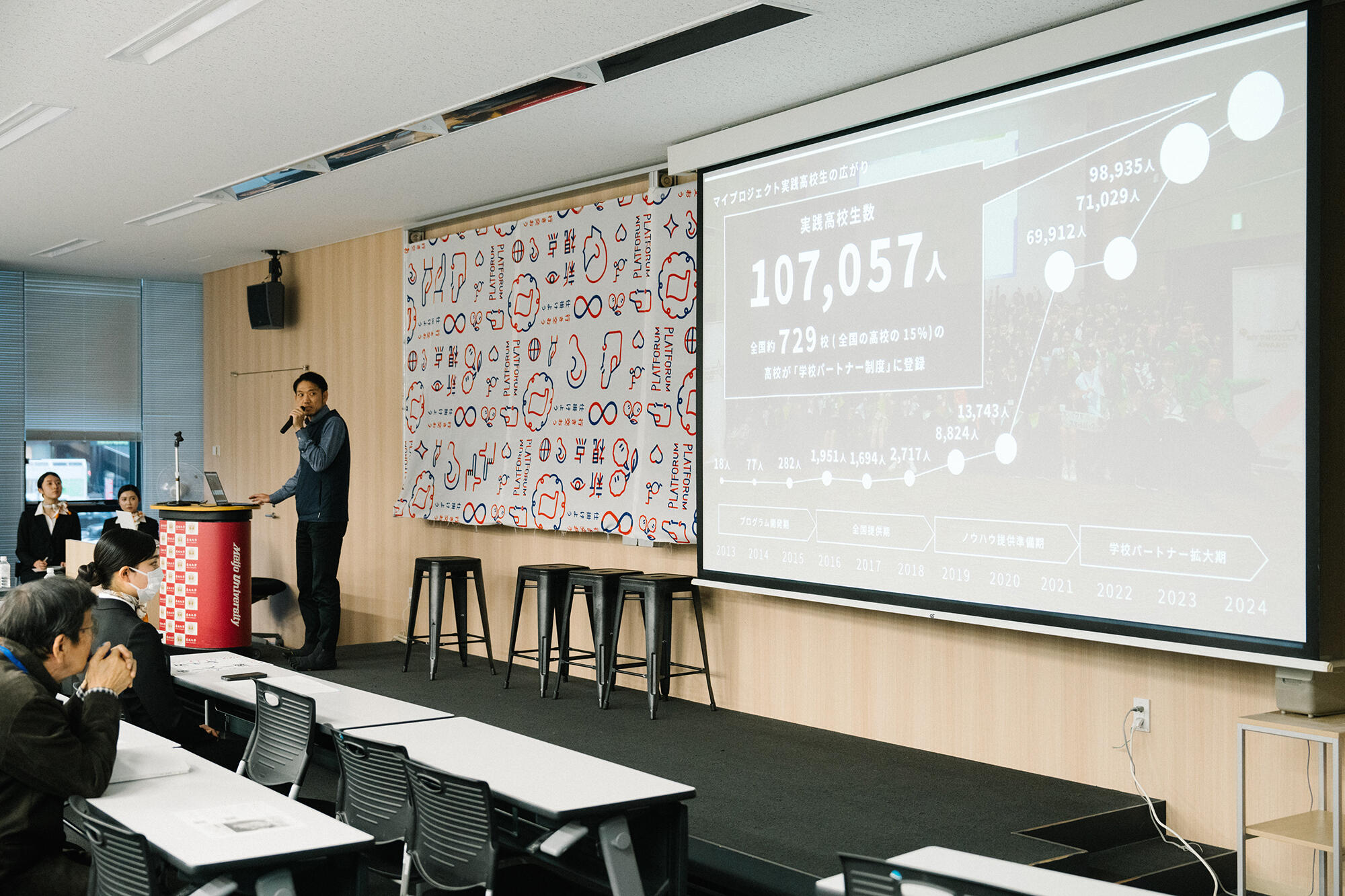 教育報道部で子どもの主体性を重視した学校を取材したり不登校について掘り下げていくうちに、現行教育への疑問が強くなり、探究学習やプロジェクトを取り入れた学校教育に魅力を感じるようになりました。同時にメディアリテラシーを育む必要性を感じ、社内の新規事業として、小中学生向けのニュースの配信サイトを名古屋市教育委員会と立ち上げました。もう一つ始めたのが、マイプロジェクトアワードです。これは、NPO法人カタリバが全国事務局をやっているもので、宮崎氏は不登校取材をきっかけに、全国大会で参加者の高校生と対話するサポーターに誘われて参加するようになりました。そしてこの取り組みの価値と可能性を確信し、会社に提案してマイプロジェクトアワード愛知県サミットを開催することにしたのです。2024年度に本学ナゴヤドーム前キャンパスで初開催し、42プロジェクト130人の高校生が発表と対話をおこないました。2025年度には、日常的に高校生を支援しようと、一般社団法人Ourを設立。月に一度、ナゴヤドーム前キャンパス「社会連携ゾーンshake(シェイク)」で高校生と高校生をサポートする大学生や社会人が混ざり合うゼミのような場をつくっています。さらに、愛知県からの受託事業として、プロジェクトに取り組む大学生やプロジェクト・ベースド・ラーニング(以下、PBL)を導入する大学教員の相談にのり、PBLを推進する活動にも関わっています。
