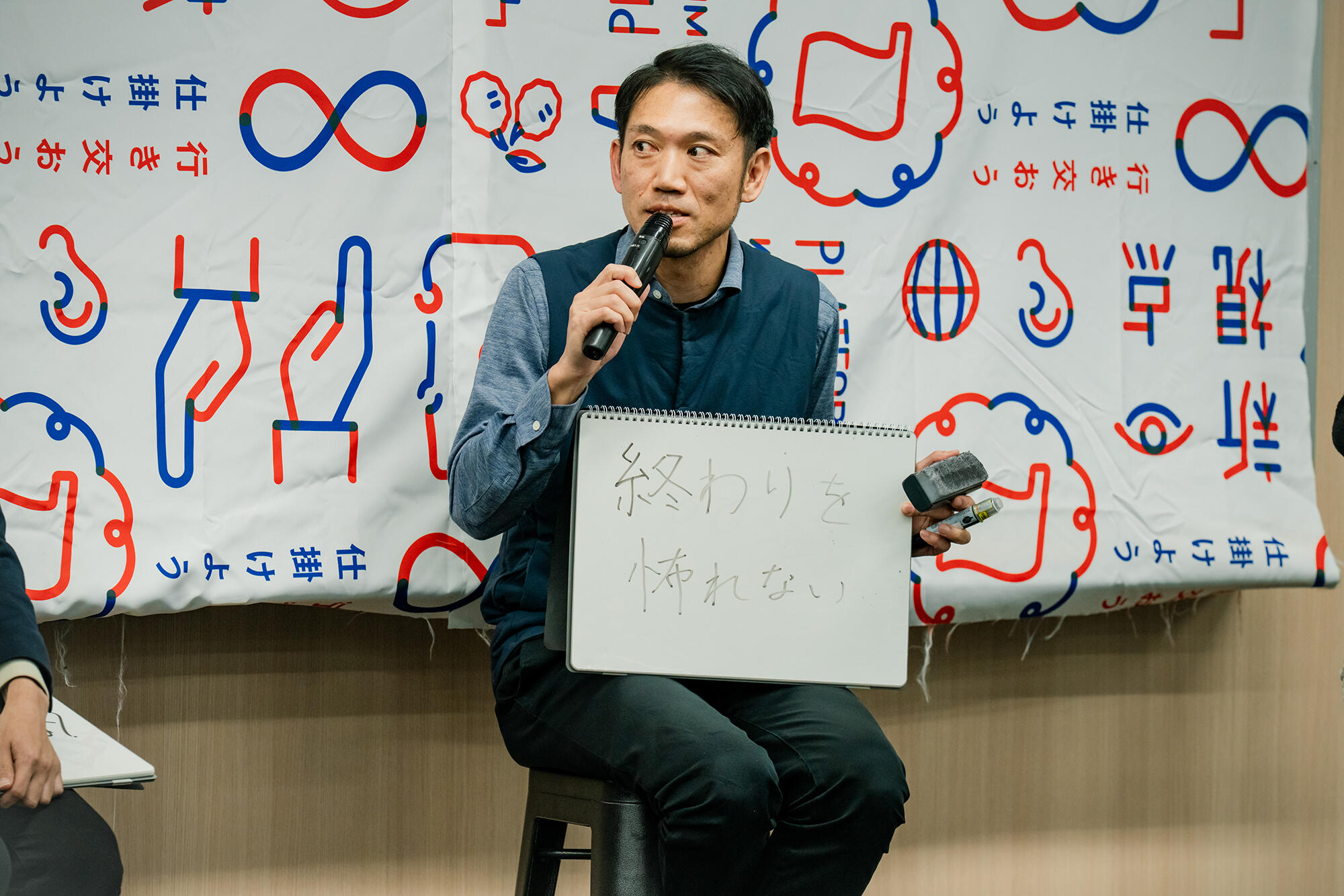 どうしたら共創は始まるのか、継承できるのかという話が多かったと思いますが、僕自身は時間の有限性を意識しています。物事は始まれば終わる。終わってもいいので、全力でやりきろうという感覚をこの場に残しておきたいと思います。